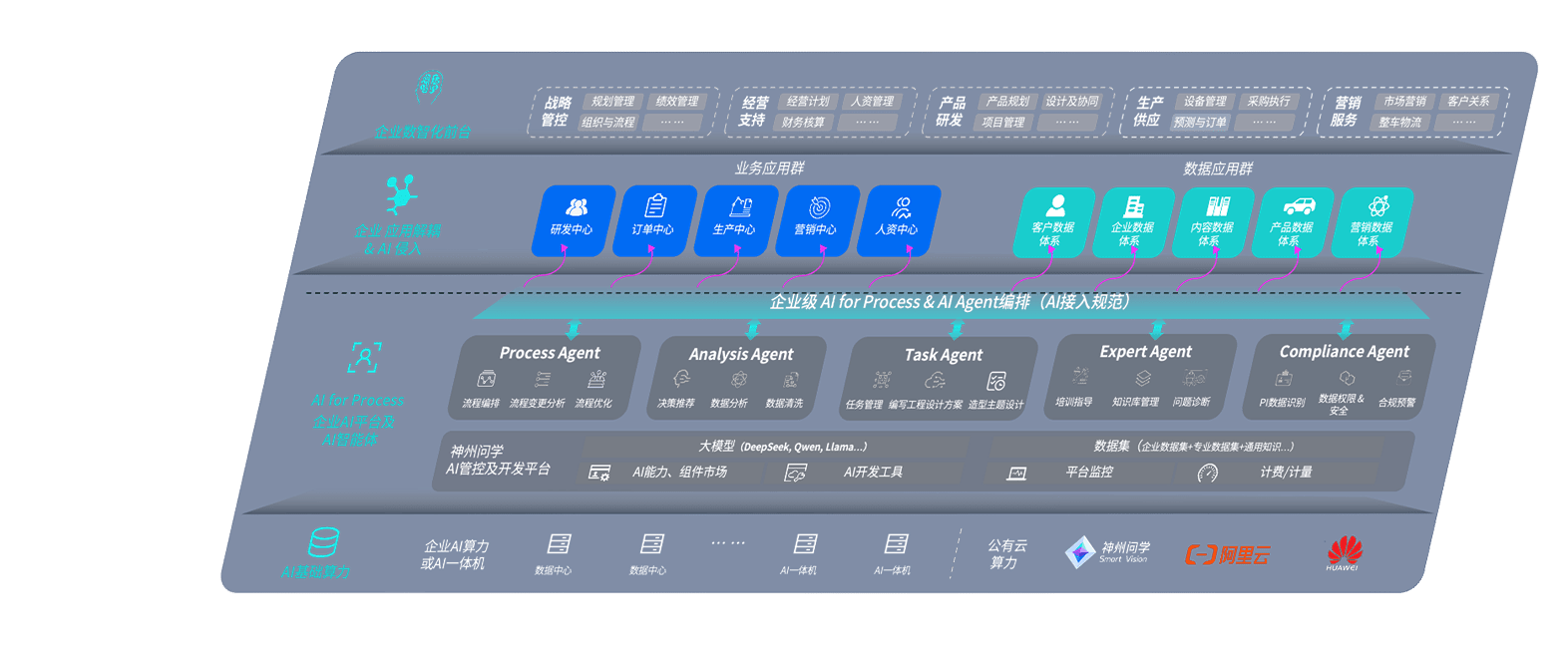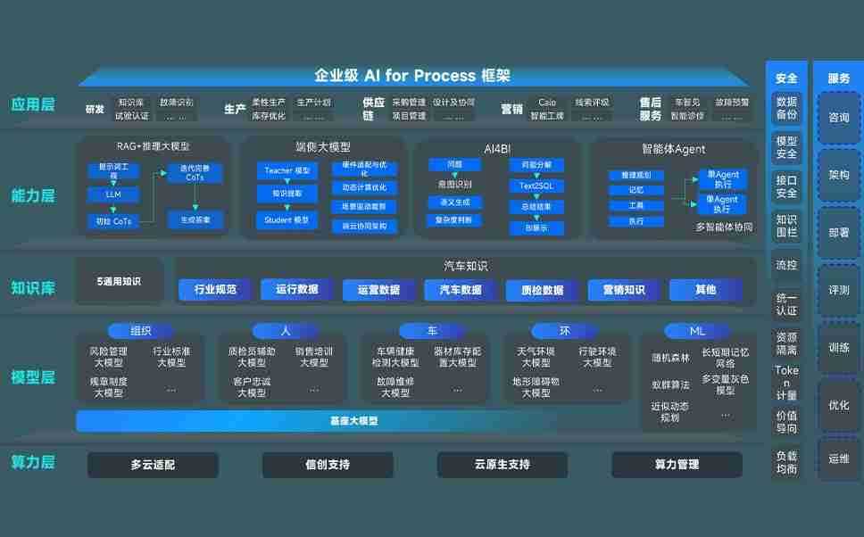 端到端的一站式AI工作空间深度融合了从企业战略规划到日常经营的全流程业务板块,,定向解决车企内部领域多、、、、部门多、、链条长、、场景碎片化等难题,,,,支持车企快速构建以AI为核心的生产力写作体系,,实现任务执行与AI能力的无缝集成与交互